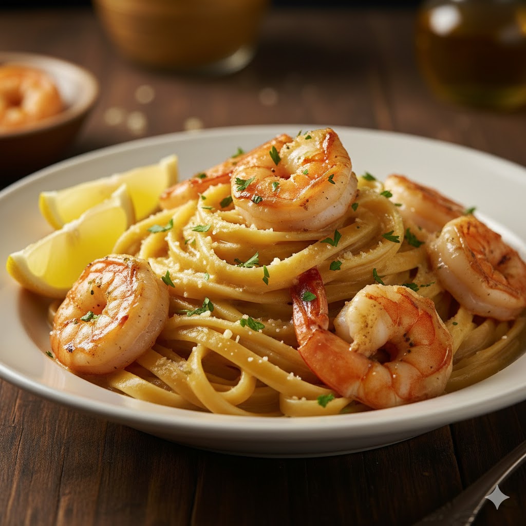 Ingredients: 300 g spaghetti or linguine pasta 500 g large shrimp (peeled and deveined) 3 tbsp unsalted butter 4 cloves garlic (minced) 1 cup dry white wine (or chicken broth) 1 tsp lemon zest 1 tbsp lemon juice 1 cup heavy cream ½ cup grated Parmesan cheese 1 tsp red pepper flakes (optional) Salt and … Read more