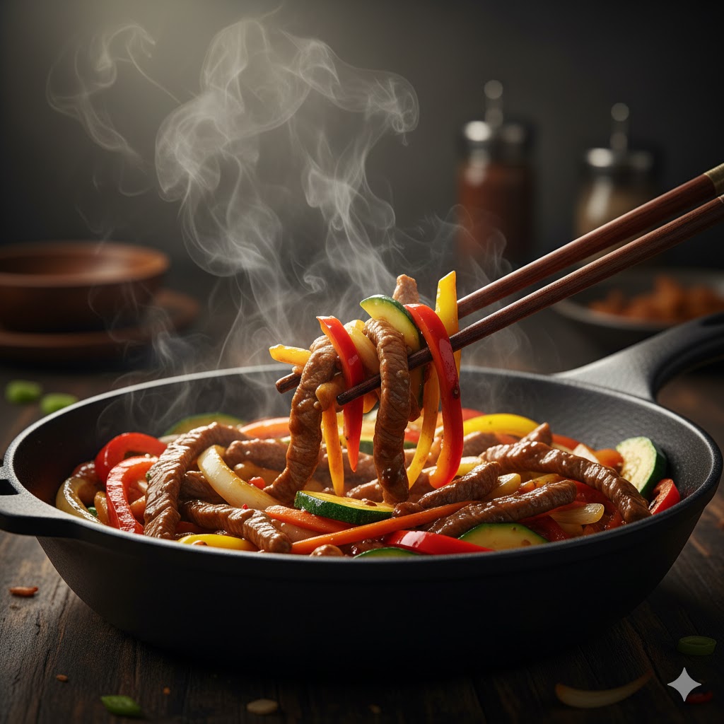 Ingredients: 500 g beef sirloin or flank steak (thinly sliced against the grain) 2 tbsp vegetable oil 1 onion (sliced) 1 bell pepper (sliced) 1 carrot (julienned) 1 zucchini (sliced) 3 cloves garlic (minced) 2 tbsp soy sauce 1 tbsp oyster sauce 1 tbsp hoisin sauce 1 tbsp sesame oil 1 tsp ginger (minced) 2 … Read more
